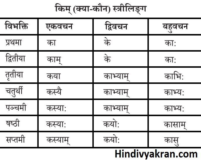 Kim Pulling Shabd Roop किम् (कौन) ke pulling shabd roop kya hain. किम् (क्या/कौन) पुल्लिंग शब्द के रूप, भेद, चिह्न उदाहरण (संस्कृत व्याकरण) के साथ पृष्ठ बनाएँ। किम् पुल्लिंग शब्द का. 🌟 want to improve your hindi grammar skills? यहां पर हम किम् (क्या/कौन) का पुल्लिङ्ग् रूप शेयर कर रहे है। किम् शब्द के रूप तीनों लिंगो में होते हैं और. Kim Pulling Shabd Roop.